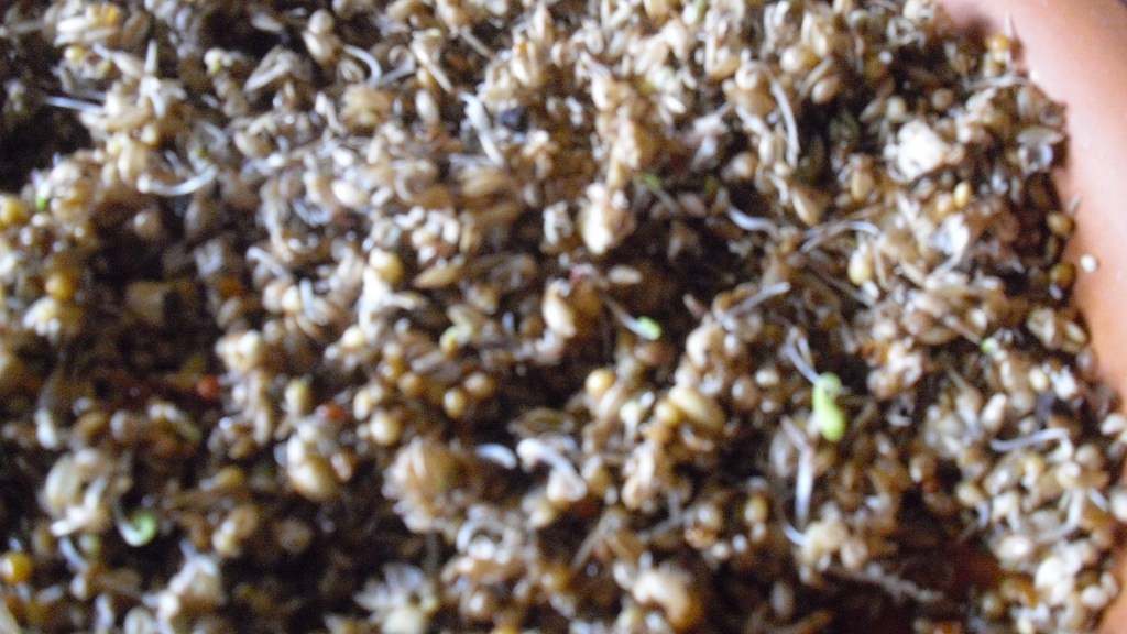 4. Wenn die Körner aufbrechen sind oder kleine weiße Wurzeln sichtbar sind, kannst du das gekeimte Futter in einer kleinen Schale anbieten.